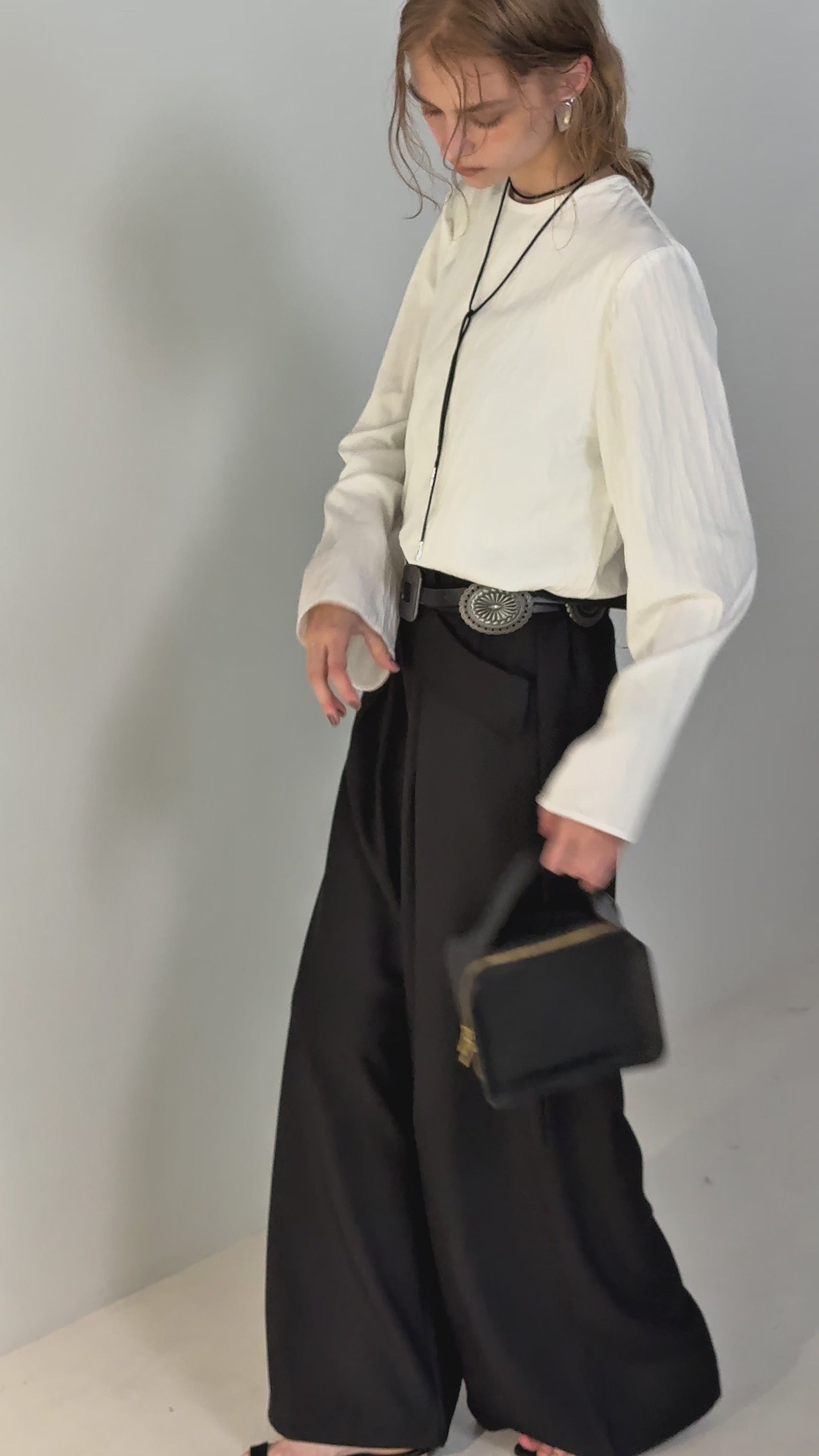 着るだけで洗練されたバランスが完成するショート丈ブラウス。裾にふんわりとボリュームを持たせたバルーンシルエットがポイントです。ウエスト位置を高く見せ、自然とスタイルアップ効果に。面倒なボトムスへのインも不要なのでコーディネートに迷わず着用いただいけます。 素材は、カジュアルになりすぎない質感で、オフィスカジュアルなシーンでも使っていただける汎用性の高さも魅力です。