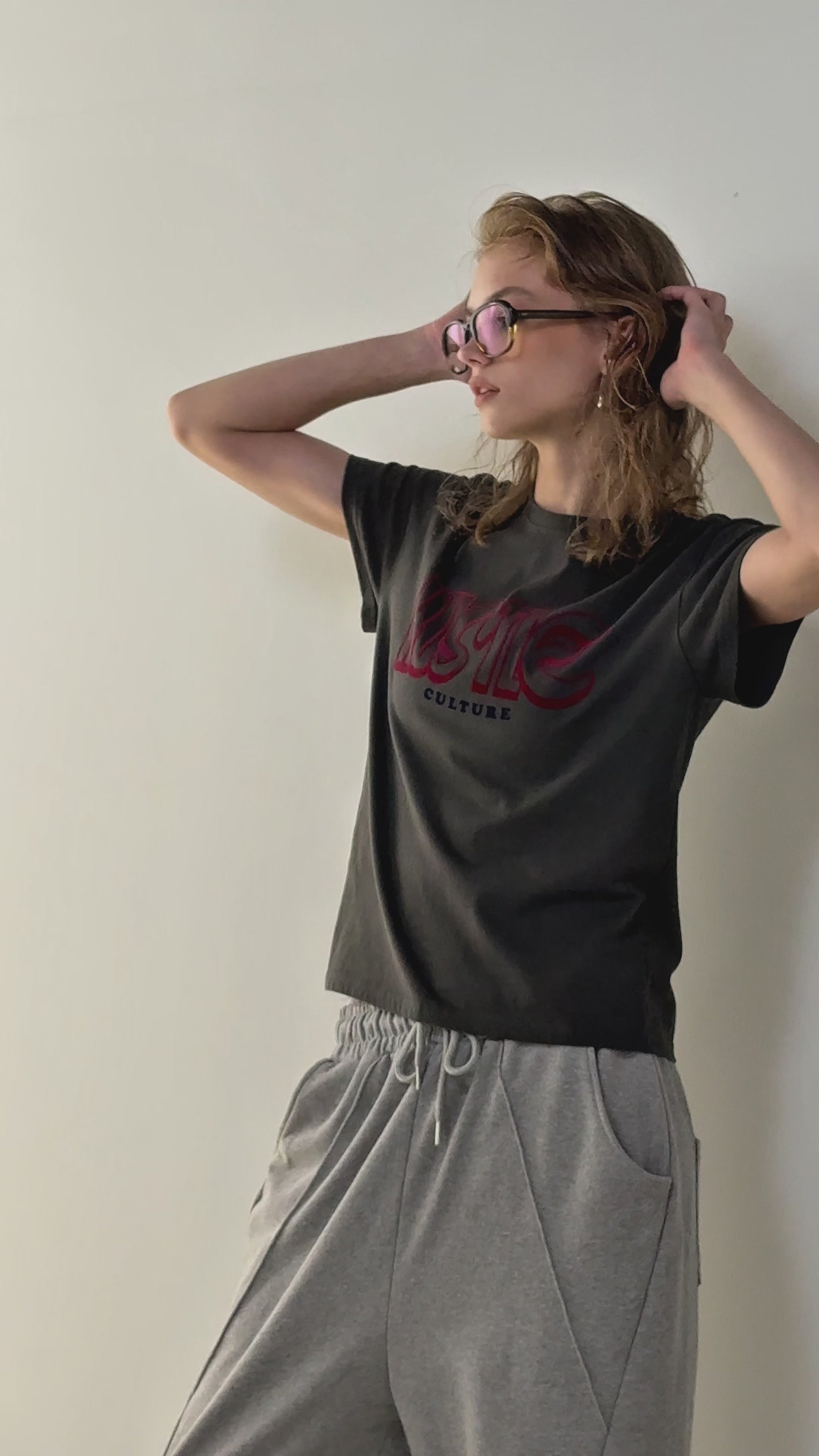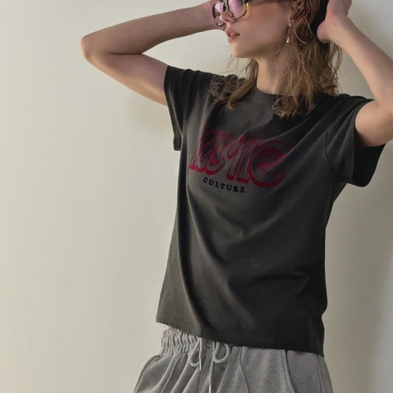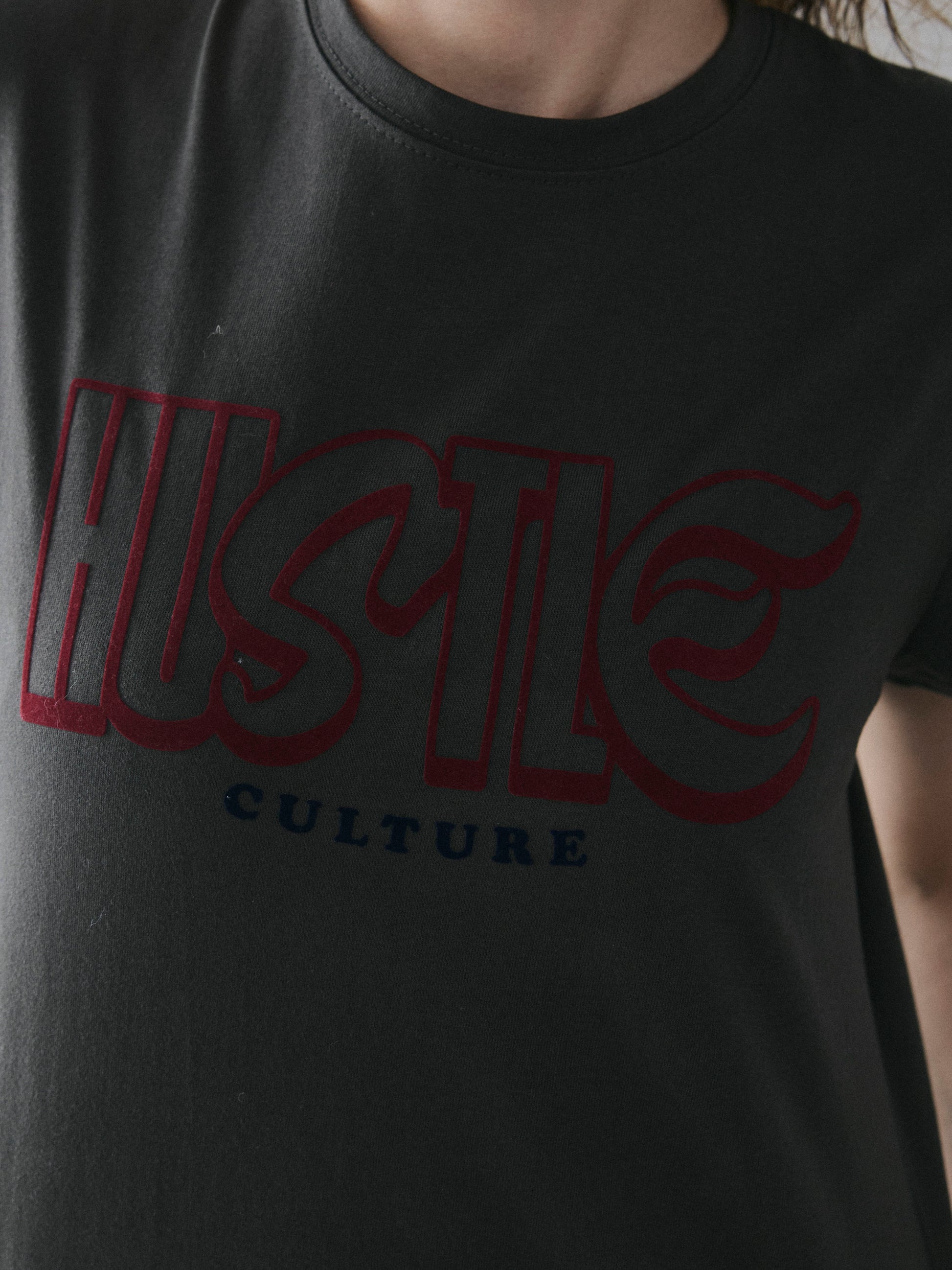 【予約:11月中旬】¨HUSTLE ¨ flocky print tee/60251008007