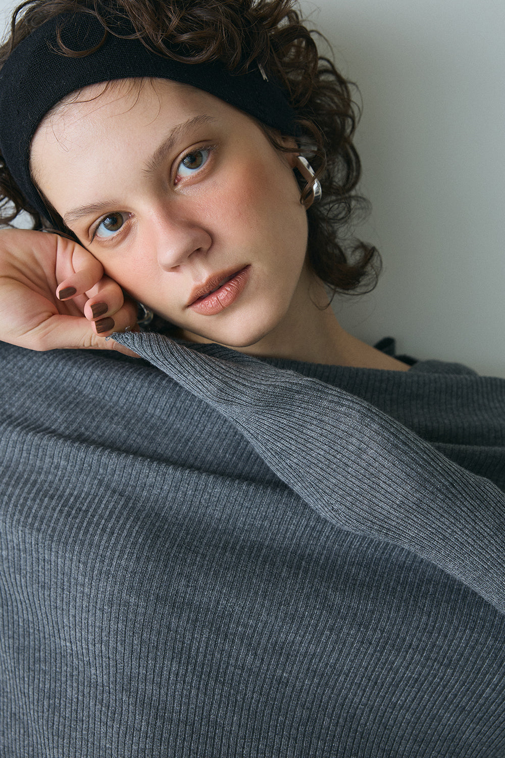 細く柔らかなリブ編みが、ボディラインにしなやかにフィットする薄手のニットトップス。 襟ぐりや裾は変形シルエットになっており、シンプルな中にもさりげないデザイン。 肩を落としてワンショルダーで着こなすのも今季のおすすめ。 着るだけで洗練されたムードを演出できる、ワードローブに欠かせない一枚です。