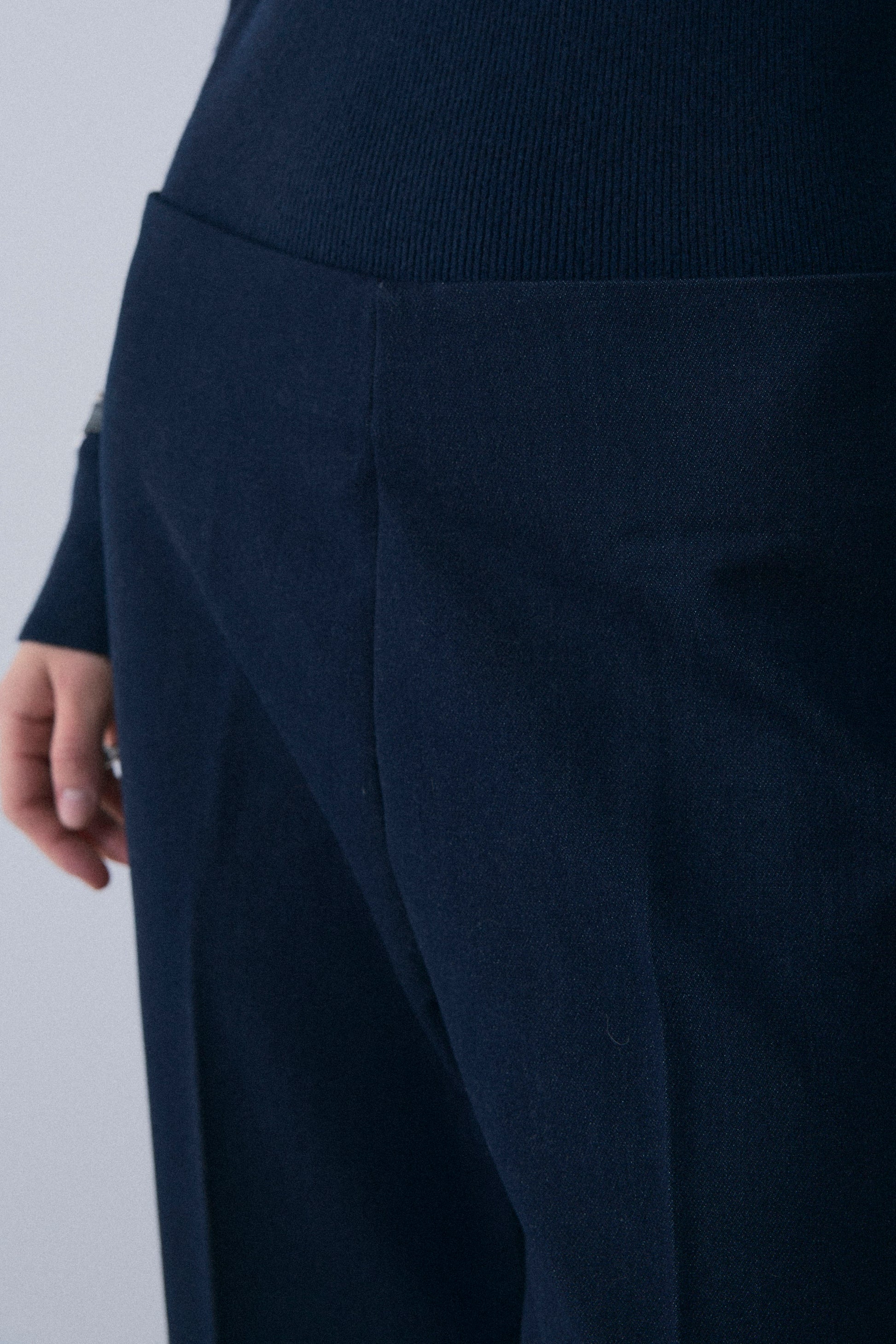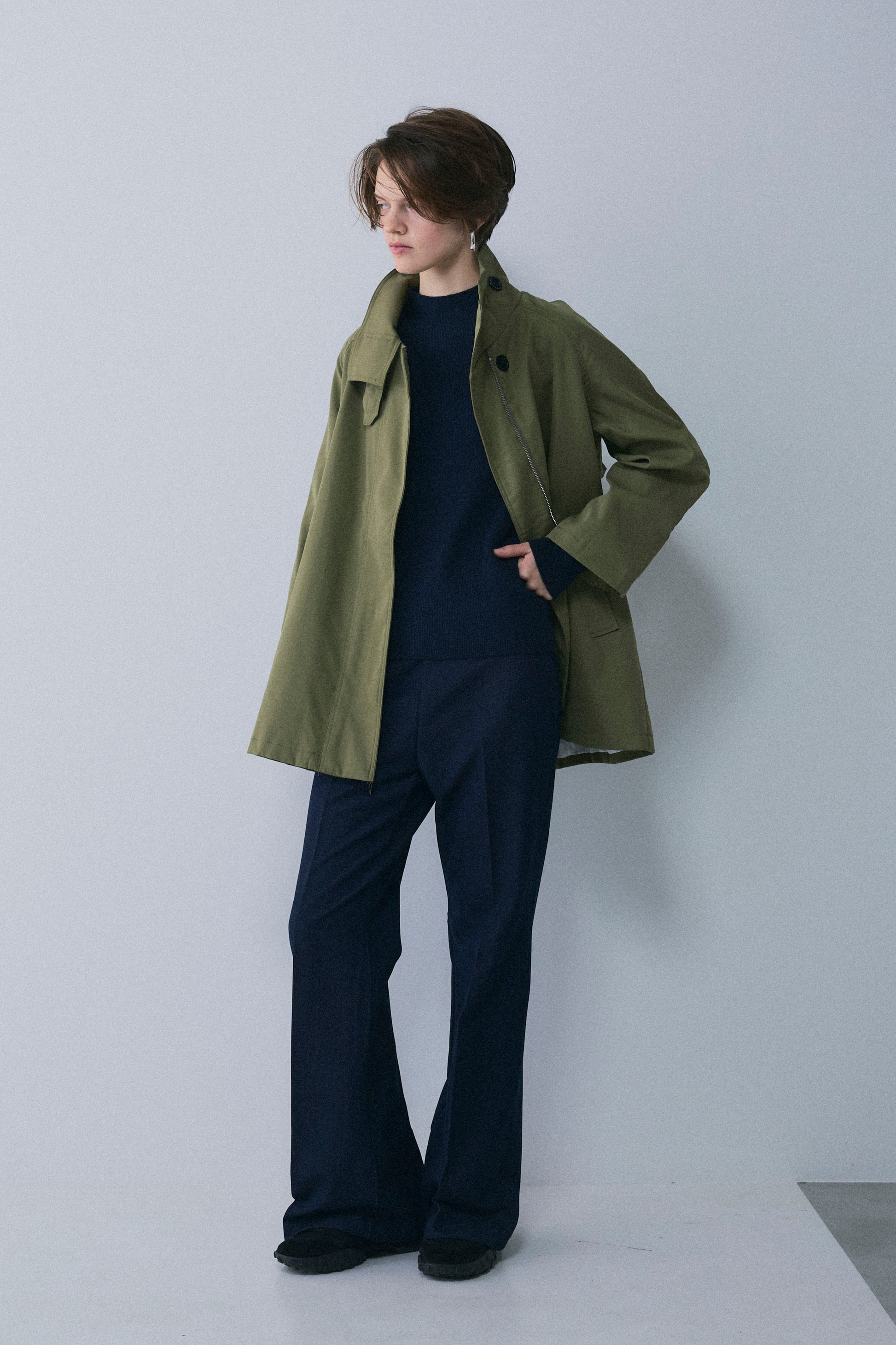 デニムライクなムードはそのままに、驚くほどの伸縮性でストレスフリーな穿き心地を実現。 脚のラインをまっすぐ美しく見せる計算されたシルエットで、カジュアルさの中にも品をキープ。 きちんと見えするのに楽ちん、デイリーコーデを支える大人のための名品ボトムス。