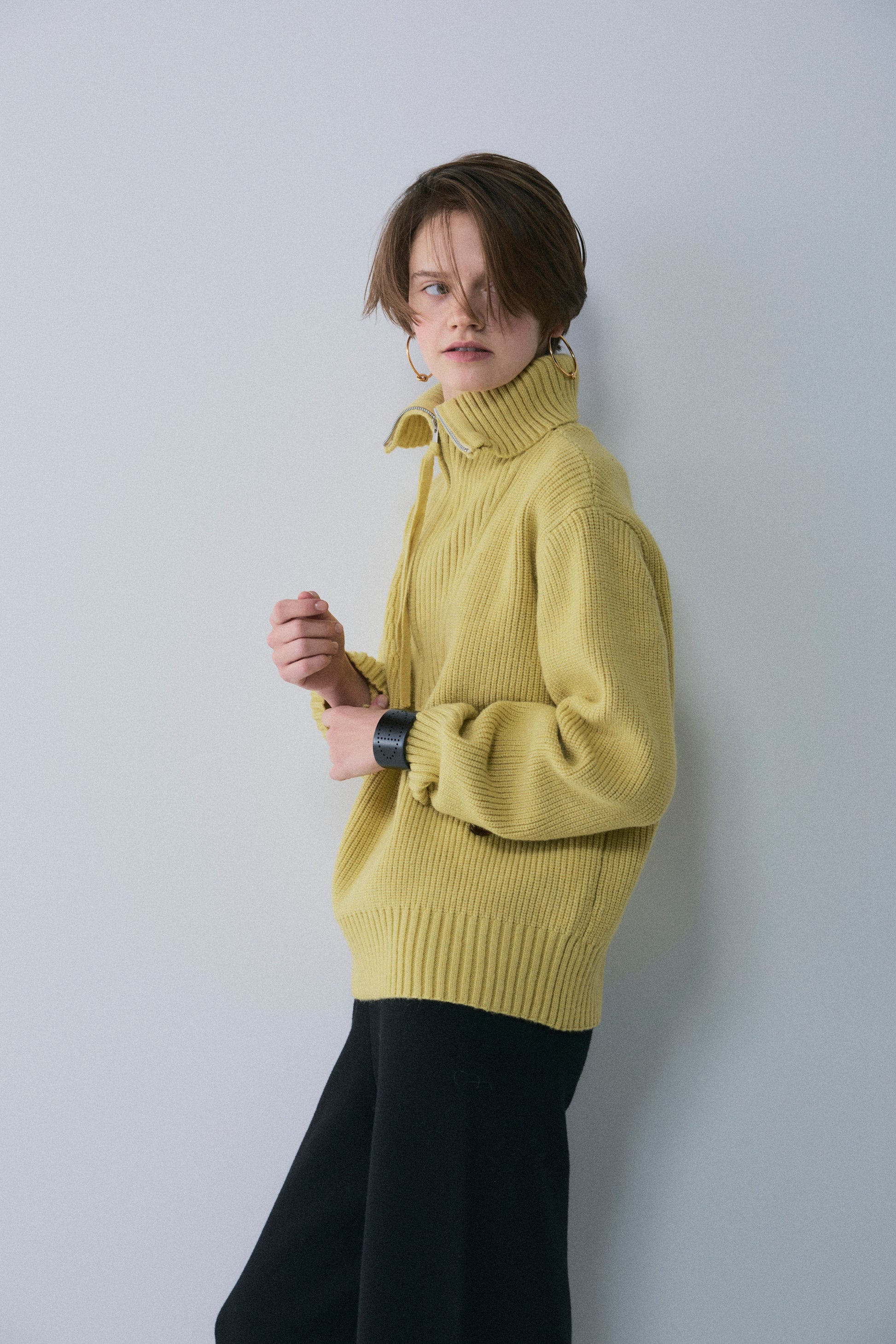 今季のトレンドであるジップデザインをニットで採用し、顔周りに洗練されたニュアンスを演出。 ジップを開けるバランスで全く異なるムードが楽しめるのが魅力。 柔らかなニット素材とハンサムなデザインが融合した、大人のデイリースタイルを格上げする一枚。